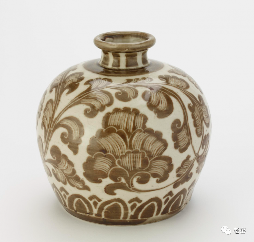 金定窑白釉褐花牡丹卷草纹瓶