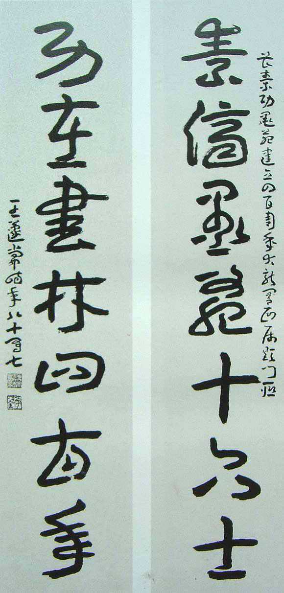 在沈增植的启蒙与指导下,王蘧常深受其“学章草,必须从汉隶出,赵子昂所书,虽着意发泼,乃是唐宋人笔法,非其至也”的碑学观念影响。王蘧常的碑学观念侧重点在法古层面,因而,他并不注重碑法的侧利劲折、雄起角出。他对魏碑一味注重方笔表现,兴趣不大,而是较为注重笔法,结撰的古意、浑穆。沈增植之于碑学,侧重点在中古——魏晋南北朝,而王蘧常的碑学侧重点在上古三代秦汉。沈增植书法重在翻古求新,托古改制;王蘧常书法则意在以古为新,厚古薄今。从这个意义上说,王蘧常并没有完全走一条与沈增植相同的碑学之路。