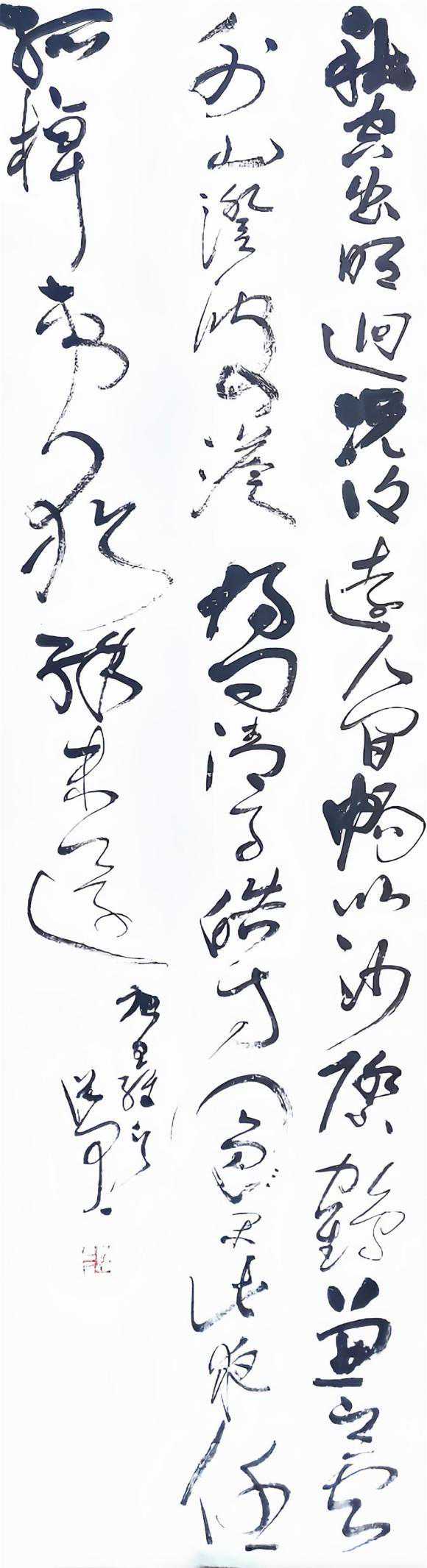 蔡祖逖先生的书法堪称一绝。其书作雄浑苍茫、气势磅礴、思与神合、具有抽象笔墨意味的经典之作,他以丰厚人生阅历和学识修养为底蕴,以臻于化境的笔墨功夫作支撑,一破此前的因袭摹古和法度束缚,因心造境,以手运心,写书法以神遇而不以目视,足见蔡祖逖先生的艺术功力和成就非同一般。在笔法上也达到了前无古人,后无来者的境界,蔡祖逖先生的书法,层层深厚,气势磅礴,惊世骇俗,这一显著特点,也使中国的书法上升到一种至高无上的境界。