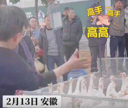 近期安徽,路边套大鹅的摊位上惊现神秘高手,一位戴眼镜的小青年,手持塑料圈,面对众多大鹅,一套一个准。围观群众都看呆了,老板表情也麻木了。