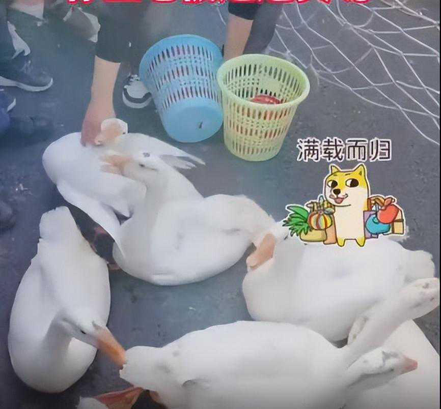 镜头一转,小伙脚底下已经有七八只大鹅了,这一幕惊呆了网友,有人称:“这是来进货了”?