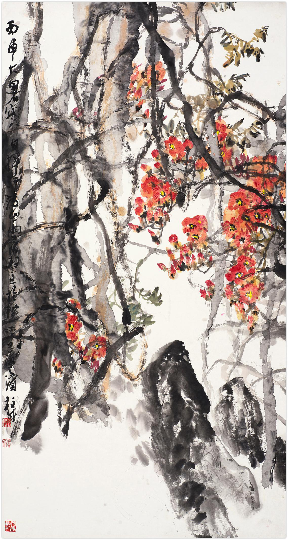 黎柱成的画具有浓烈的岭南特色,纵横均匀带来扑面而来的气息,尤其是他的传统程式和新题材的把握,处理的非常好,他的花鸟画的题材很多,包括海棠、牡丹、木棉都非常有特点。这些传统的题材又是非常难创新的题材,他用自己独特的表达方式呈现出来,是非常难得的。