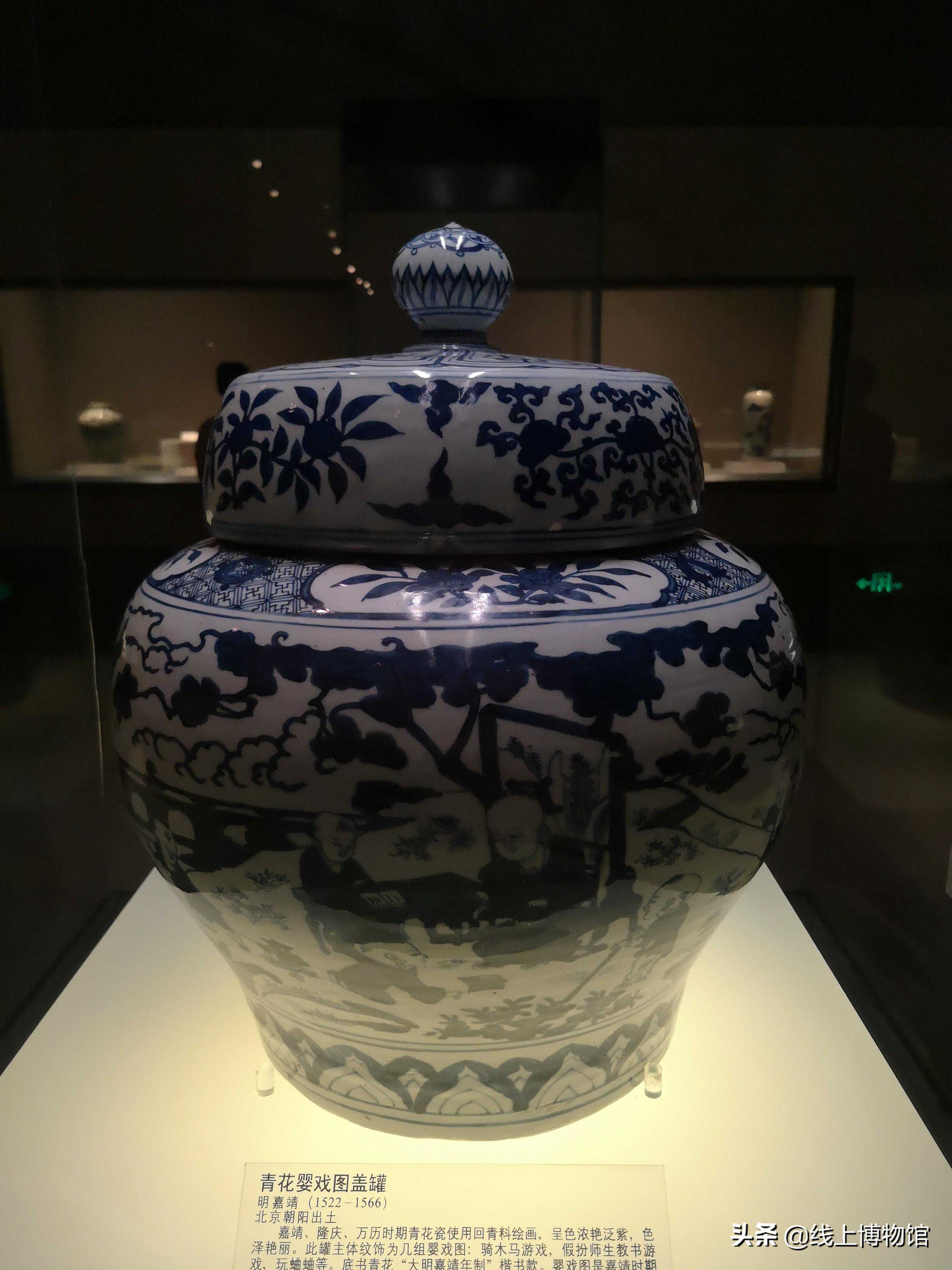 明-嘉靖青花婴戏图盖罐