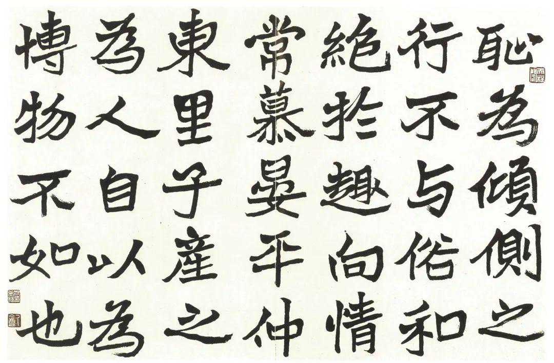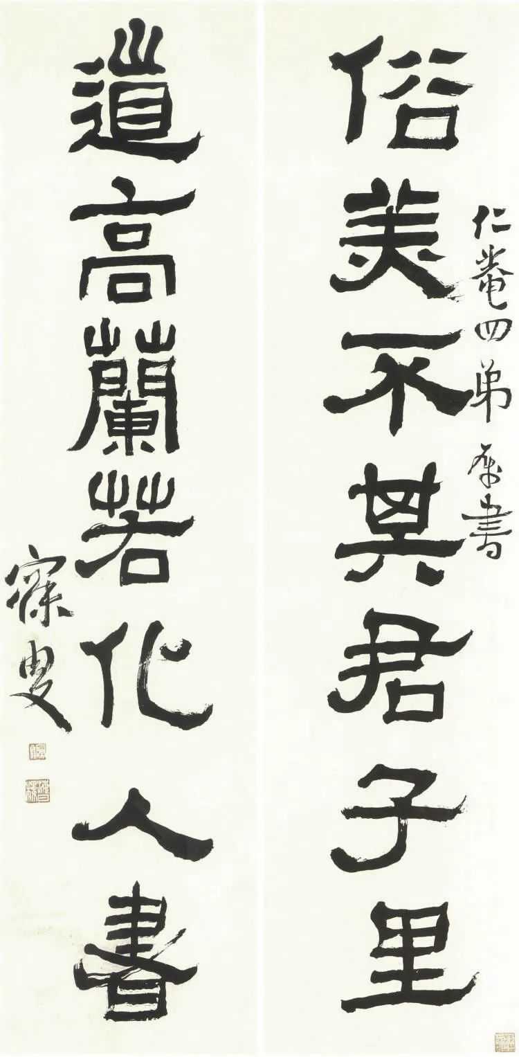 诚然,碑学的发现和发展丰富了书法取法资源与审美,然而,金石碑版乃至民间墨迹等书法资源皆存在原生态的特性,须经过有素养书家的“雅化”方能激活其中的价值,若是仅仅忠实摹写,那无疑同于缘木求鱼。郑簠、邓石如、金农、伊秉绶、吴让之、何绍基、赵之谦等碑学大家一代代不断地在碑版书法中摸索、揉化、参悟出各自具有合理性的风格样式,虽说出自某某碑版却又不为所囿而生发出为后世所肯定的艺术样式,某种程度而言,碑派书法不同法帖可直接传移摹写而集字创作,其更注重艺术家从思想到技法上不断生发、调试所临习的对象及呈现艺术的创造力。沈曾植前期以碑版为主要学习对象的时候,很好地解决了这个问题,其所临摹的《爨宝子碑》既体现了碑版的厚重感又很好地表现其飞动的结体特征,而沈曾植在获得《流沙坠简》墨迹章草之后,其很快将章草字形摄入碑派用笔体势之中。
