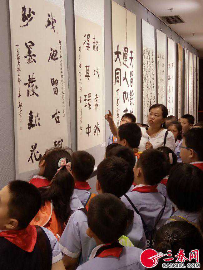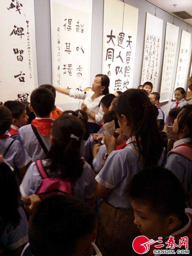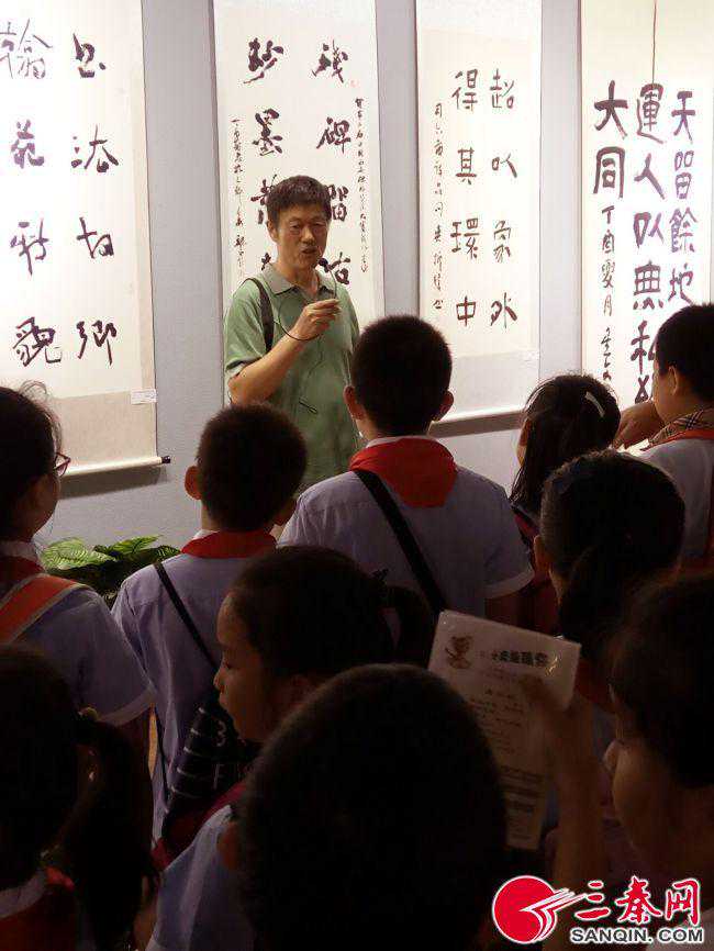 “草书行云流水,楷书古雅美观,行书端正平稳,篆书气势宏伟,隶书飞扬飘逸,就像我们人一样各有性格。”在琳琅满目的书法作品展厅,陈天民老师围绕书法发展的历史脉络、字体演变轨迹和各种字体的审美特点,并结合获奖作品进行详细剖析讲解,给学生们带去了一节精彩而丰盛的书法美学课。