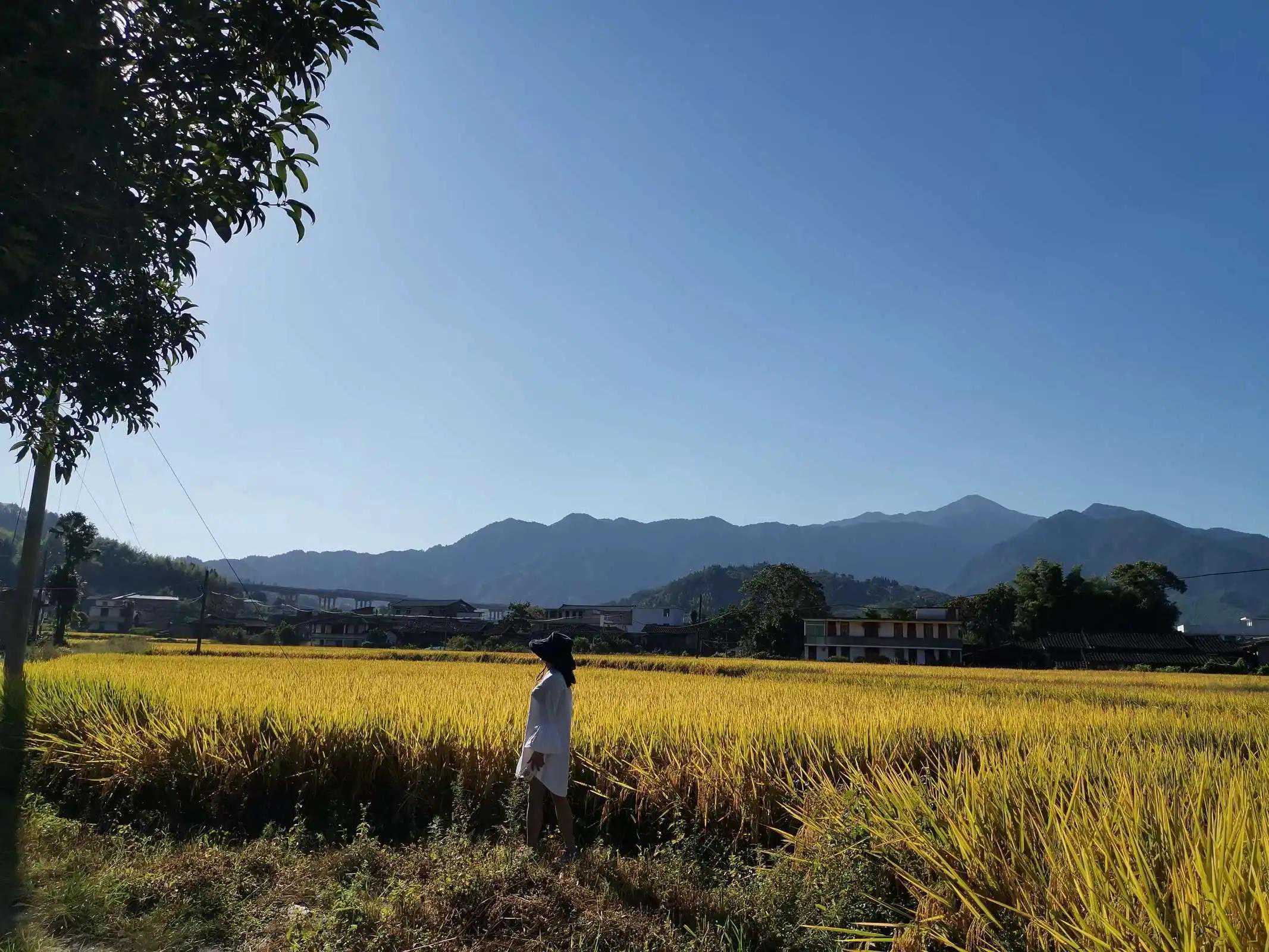 你辣辣地从夏走来,我在湛蓝的天际等你。等你把一片金黄铺向大地,温柔染进眼眸。金黄的狗尾巴草,紫红的秋菊,还是那绿绿的树,闪着银波的小河,远方那伟伟的戴云,黑土地,小径弯绕,妩媚恬静!