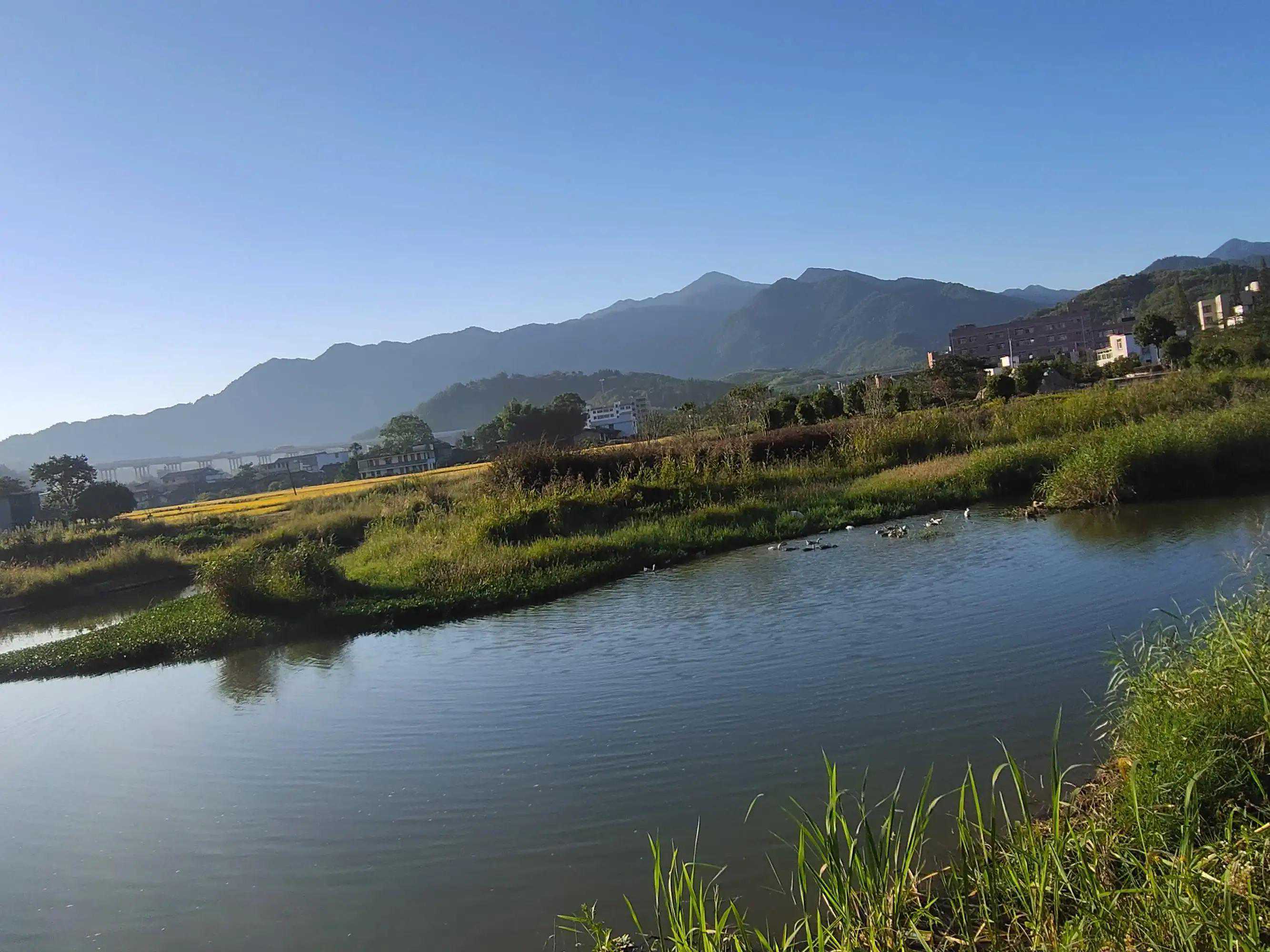河的一边稻谷已割一部分。