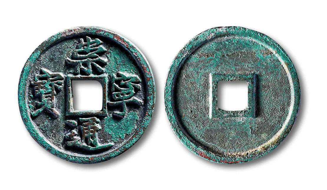 崇宁通宝是北宋徽宗赵佶崇宁年间(1102-1106)这四年间所铸造的铜钱,属于年号铜钱,有崇宁通宝、崇宁重宝和崇宁元宝三种类别。崇宁通宝当十型,钱文属于宋徽宗亲自手写的年号钱,所以称为其御书钱,又以其集美的字体和样式、版别深受广大收藏爱好者的喜欢。