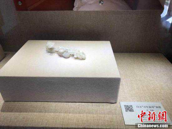 清乾隆白玉“万年益寿”如意。(贾鑫磊摄)
