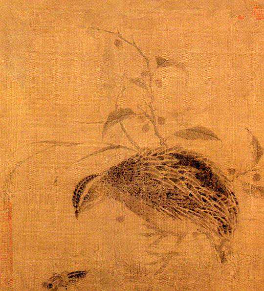 黄居?竹石锦鸠卷(局部)