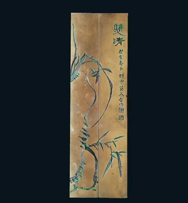 姚茫父与陈师曾合写“双清”铜镇