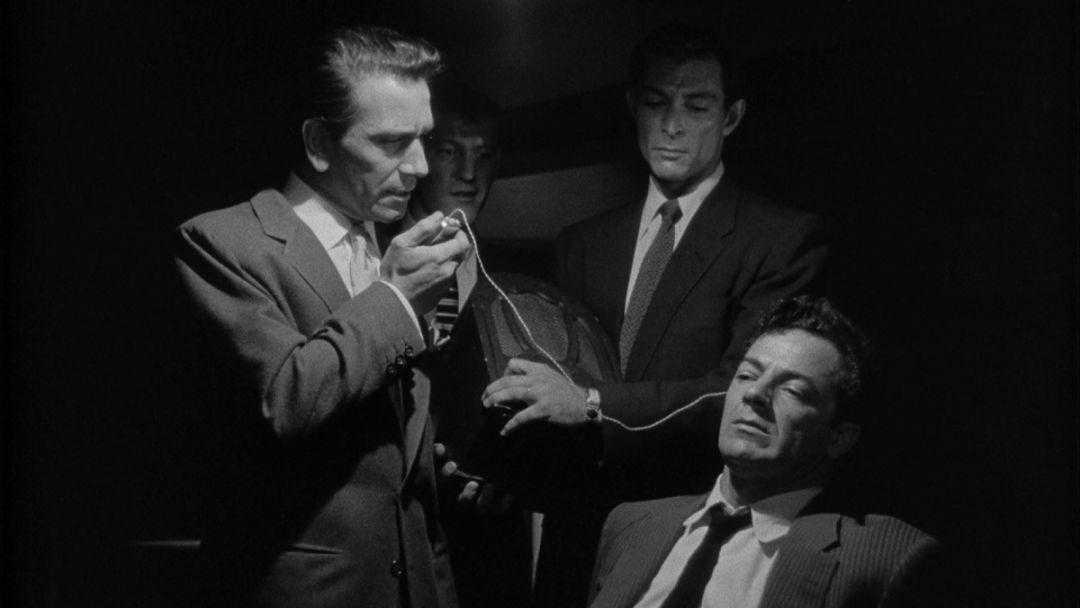 [大爵士乐队]中,助听器这种善意的发明,却被作为行刑工具。人质被绑在凳子上,耳朵里被塞上助听器,暴徒的喊叫、音箱里的鼓点,把人质活活震晕了过去。