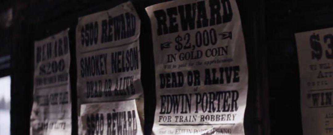 墙上贴着几张通缉令,其中一张,通缉的是埃德温·鲍特,西部片开山之作[火车大劫案]的导演,他的“罪名”正是“抢劫火车”——昆汀的胆儿有点肥。