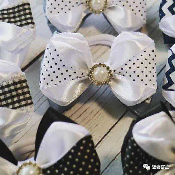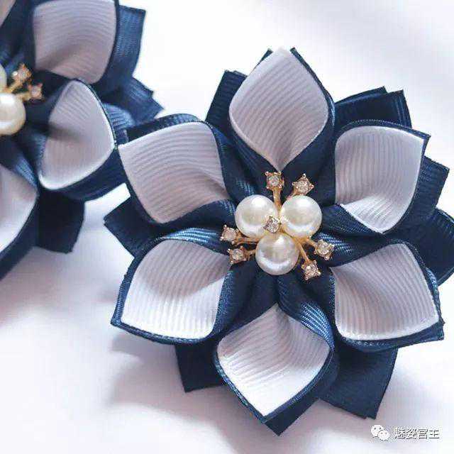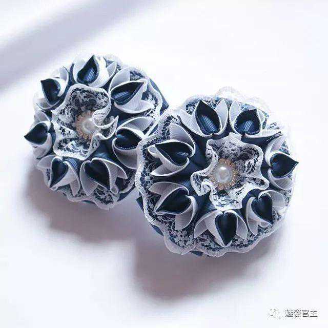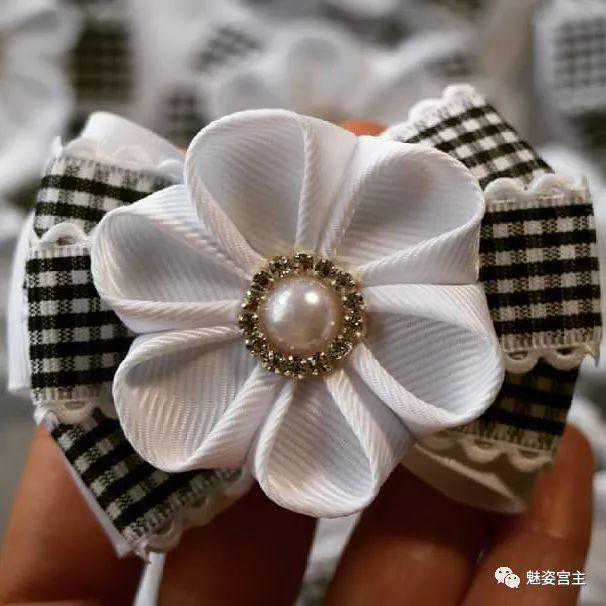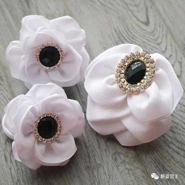 丝带花中每张图片都是不同的款式和搭配,颜色上很多是偏白色和黑色,在国内销售的可以替换其他的颜色,也可以将里面的小配件换成自己喜欢的元素,这样有自己特色的作品就出来了。