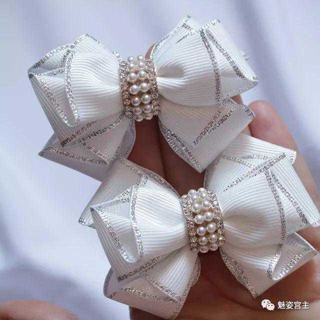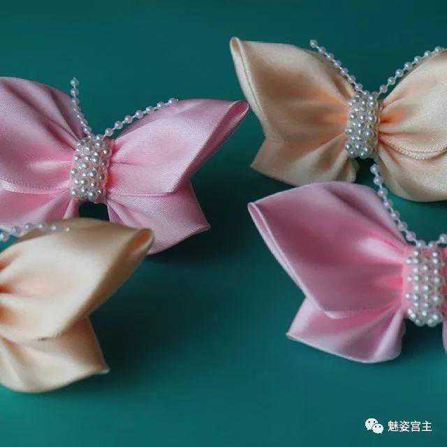 手工制作丝带花,清新飘逸的蕾丝飘带蝴蝶结发夹