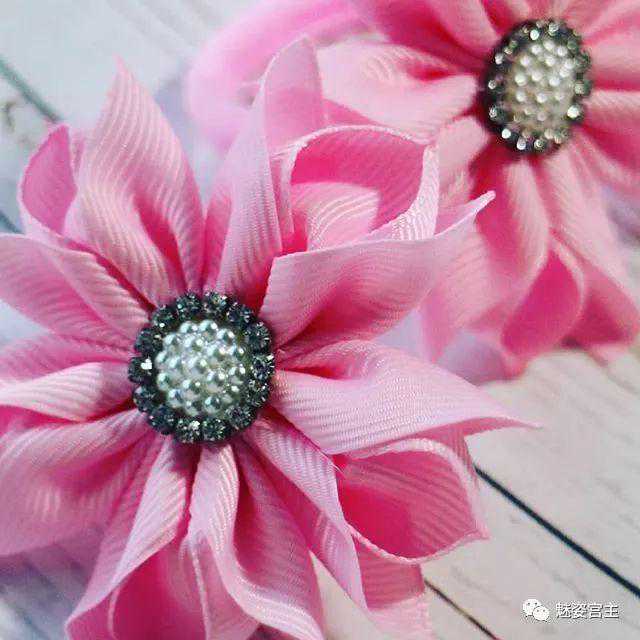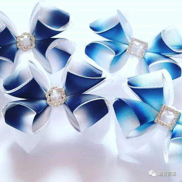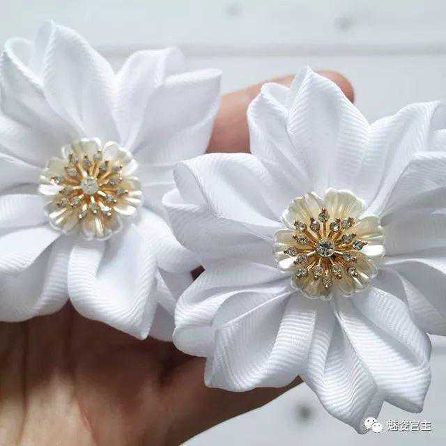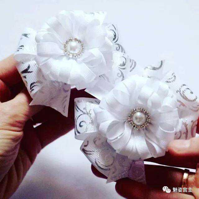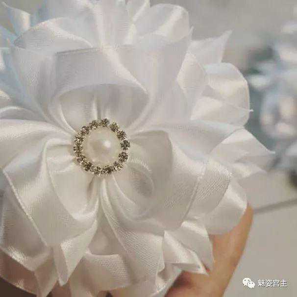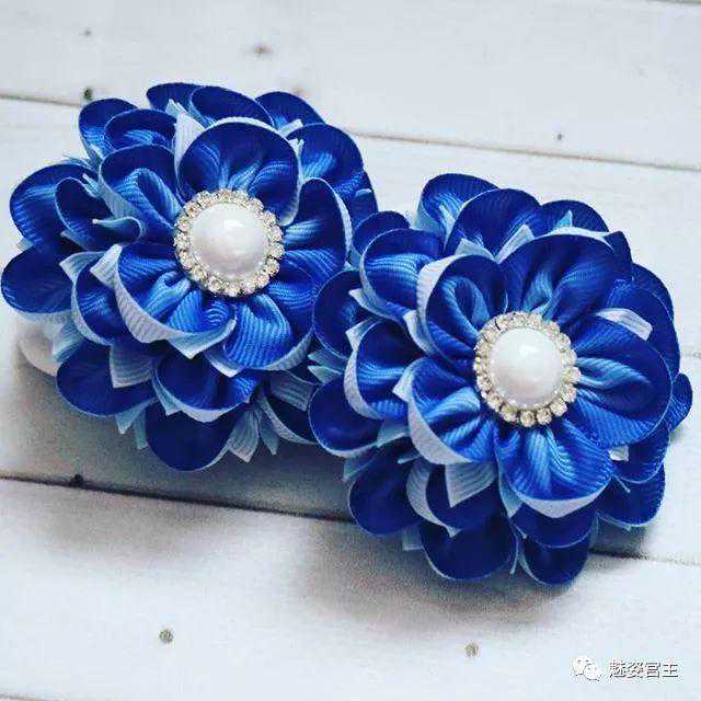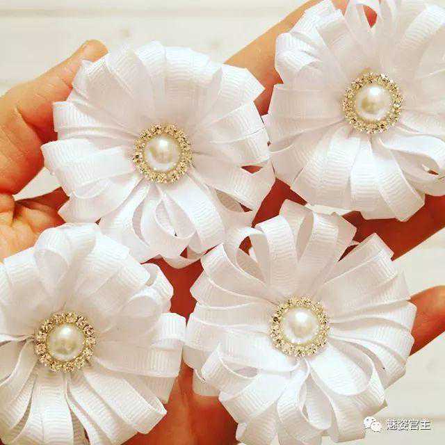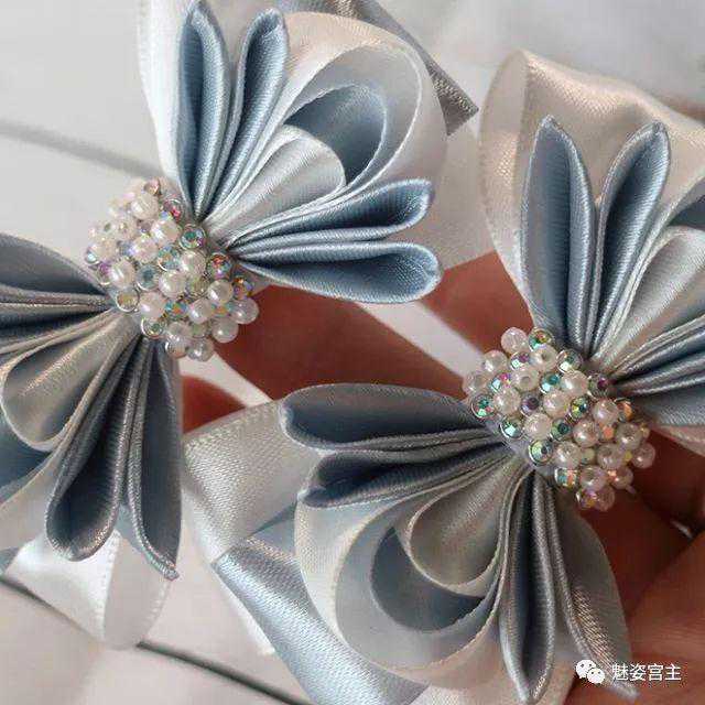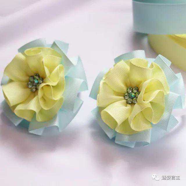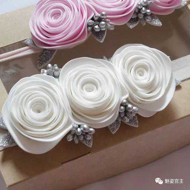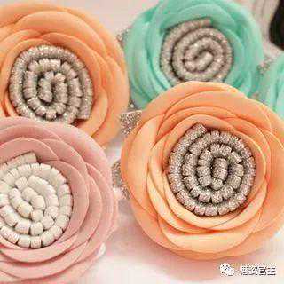 这次分享的作品图片将分为三个部分:一、丝带花作品,二、闪亮布作品,三可回收的泡沫纸蝴蝶结作品。