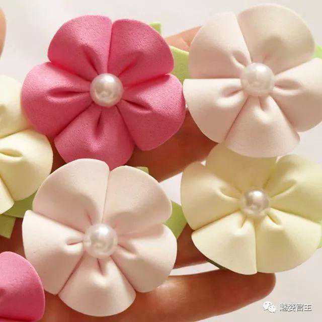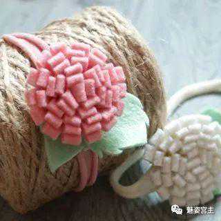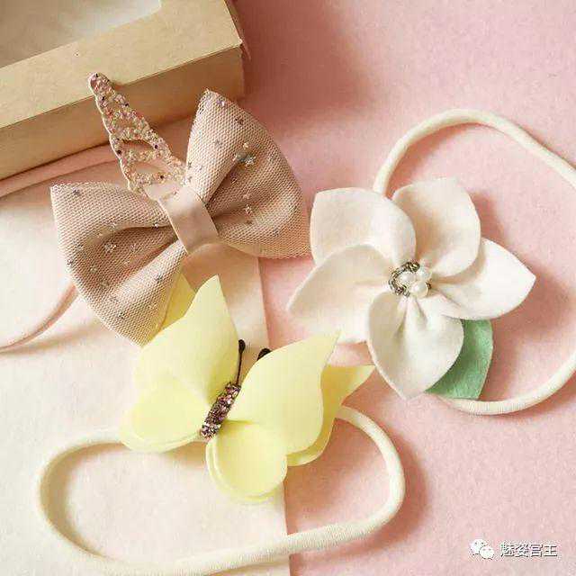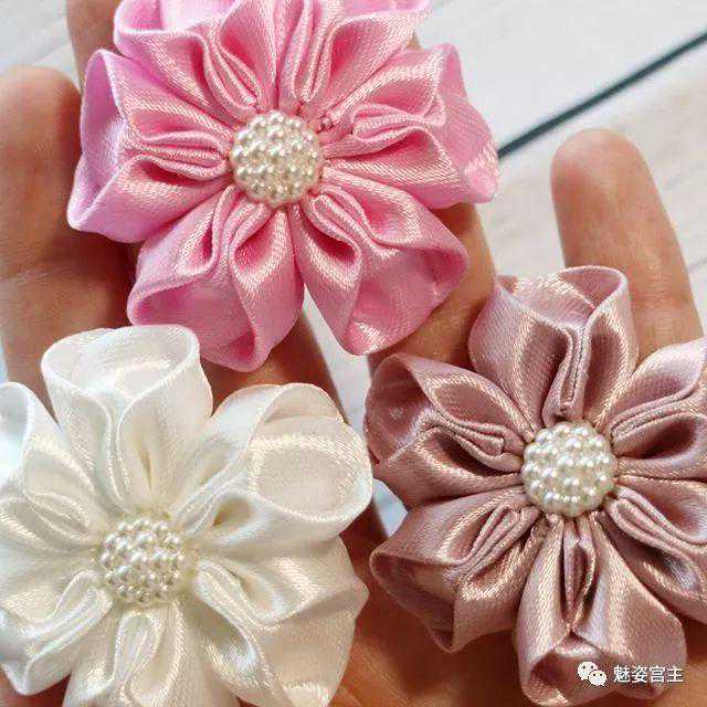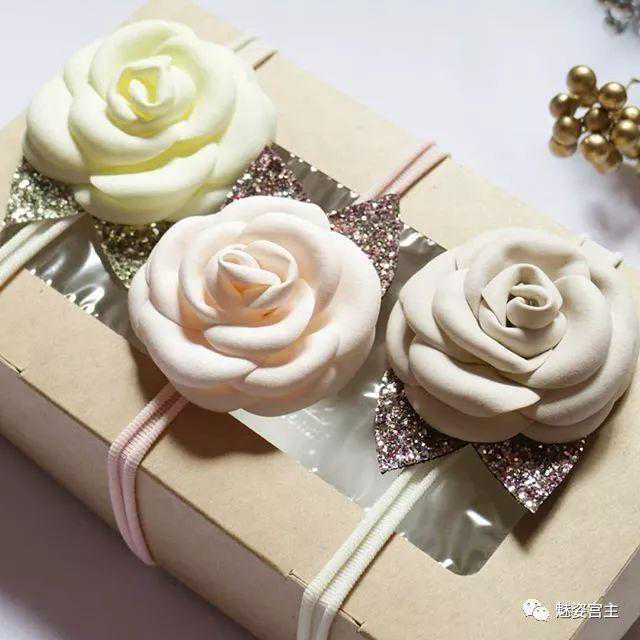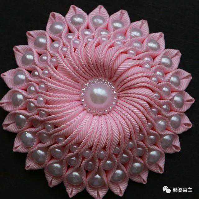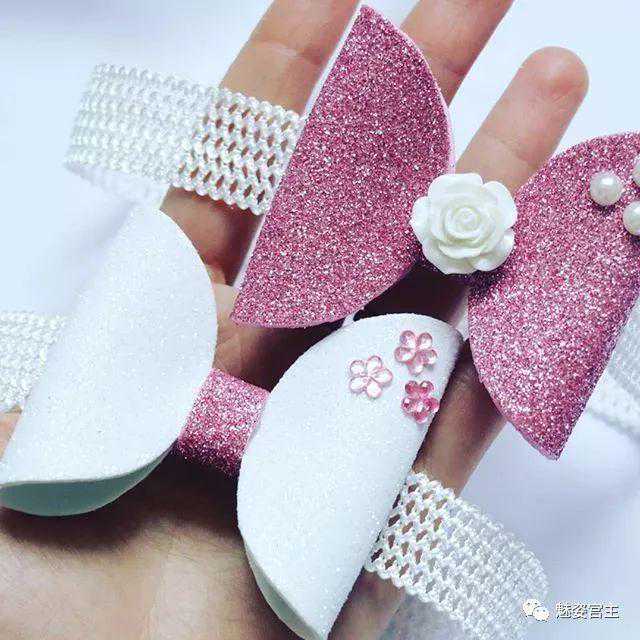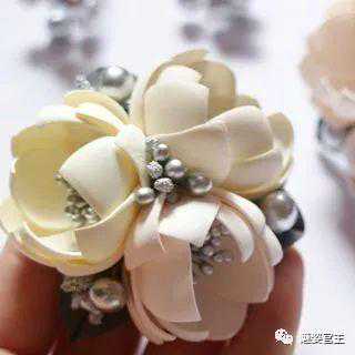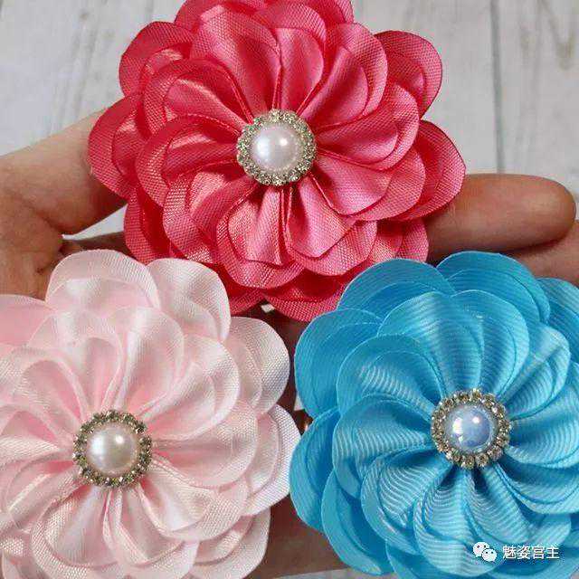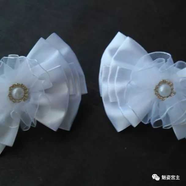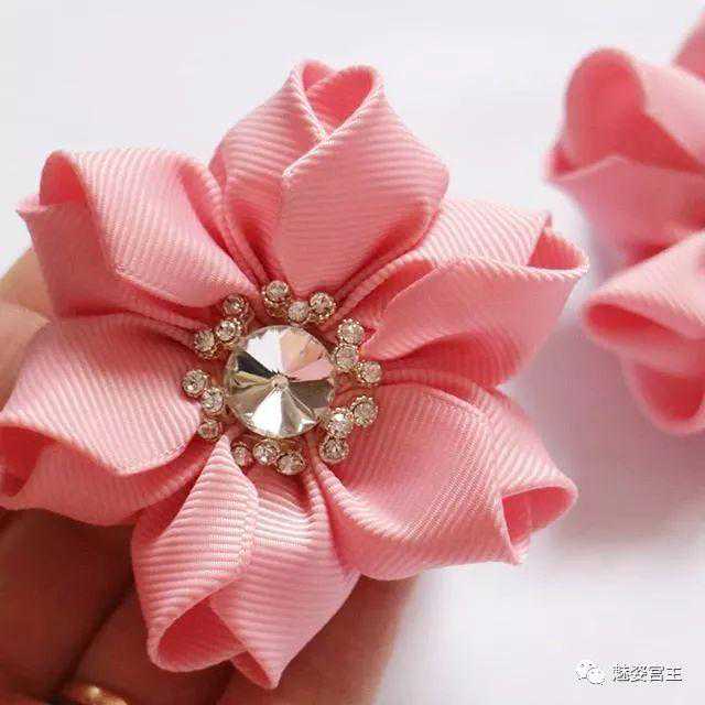 这次分享的作品图片将分为三个部分:一、丝带花作品,二、闪亮布作品,三可回收的泡沫纸蝴蝶结作品。