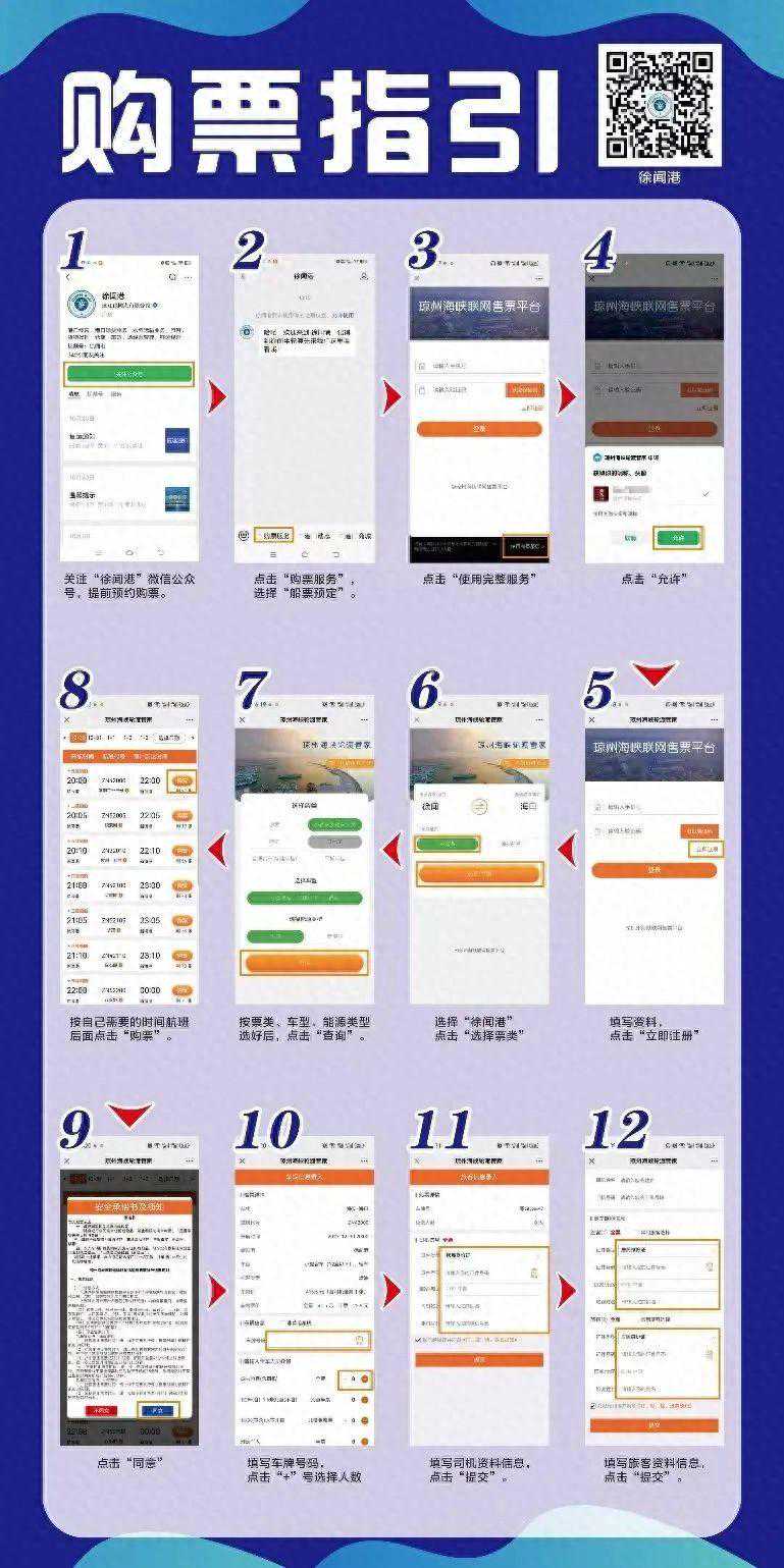 购票时务必要搞清楚航线方向,进岛选择航线“徐闻至海口”,始发港可选“徐闻港”或“海安新港”;出岛选择航线“海口至徐闻”,始发港可选“新海港”或“秀英港”,以免购错票。