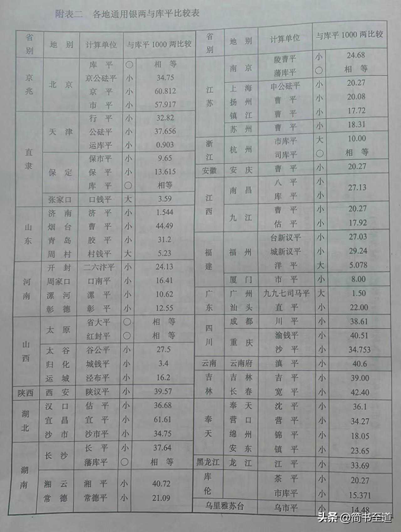 自从银元投用用推广以后,银两使用因此大为减少。民国以后,发款出入逐渐改用银元,但内陆省份还有以银两为通用货币的,致使上海、天津、汉口等通商口岸,商业流通也习惯用银两结算。各地通用银两,与库平成色比较见附表。