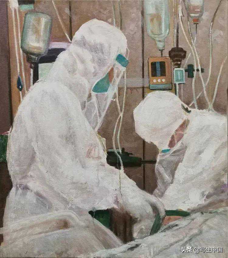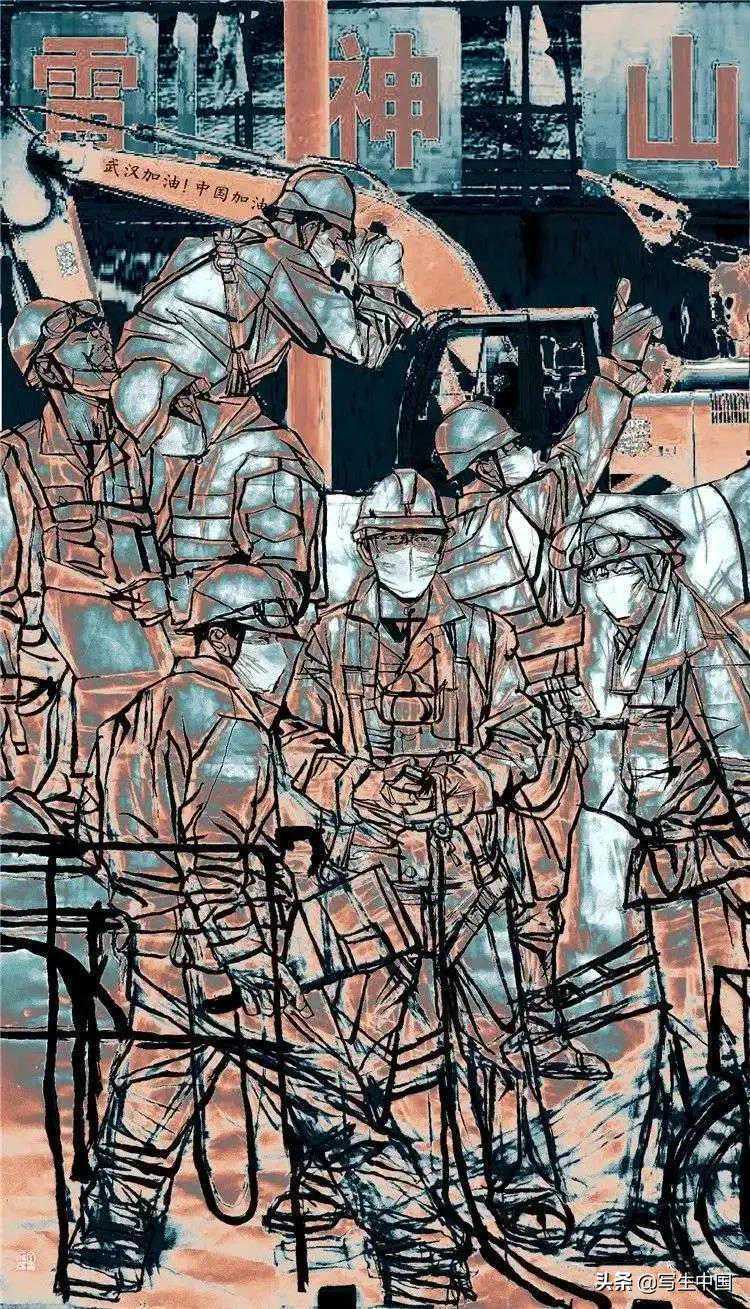 《拿画笔的抗疫战士》中国画蒋洪亮