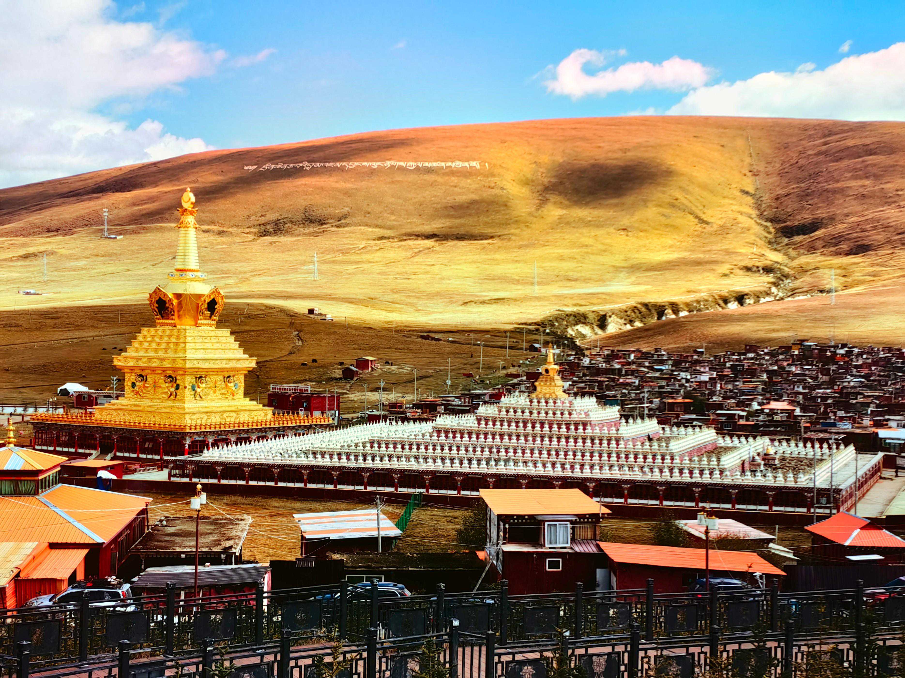 今天从白玉县前往道孚县。沿着甘白路(如今是省道S314)首先来到亚青寺。亚青寺建于昌台大草原,昌曲河穿寺而过,地势平坦、视野开阔。亚青寺是与色达佛学院齐名的大型修学圣地,周围常住有两万余僧尼。亚青寺的大部分修行者的房屋是绕河而建,以河为界分为扎巴(指出家男众)、觉姆(指出家女众)两区。据说亚青寺是世界上出家女性最多的地方。