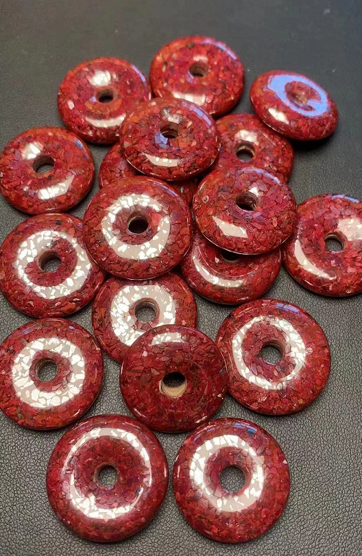 第二种:压晶朱砂:顾名思义,就是没法直接打磨原矿的这种碎小晶体,经过添加一些树脂,放在磨具中压制成型的,这种的价格要比原矿晶石便宜的多,基本上在15-20左右/克,这种的其实性价比很高,因为这种工艺朱砂含量比较高,基本上能达到百分之90以上;