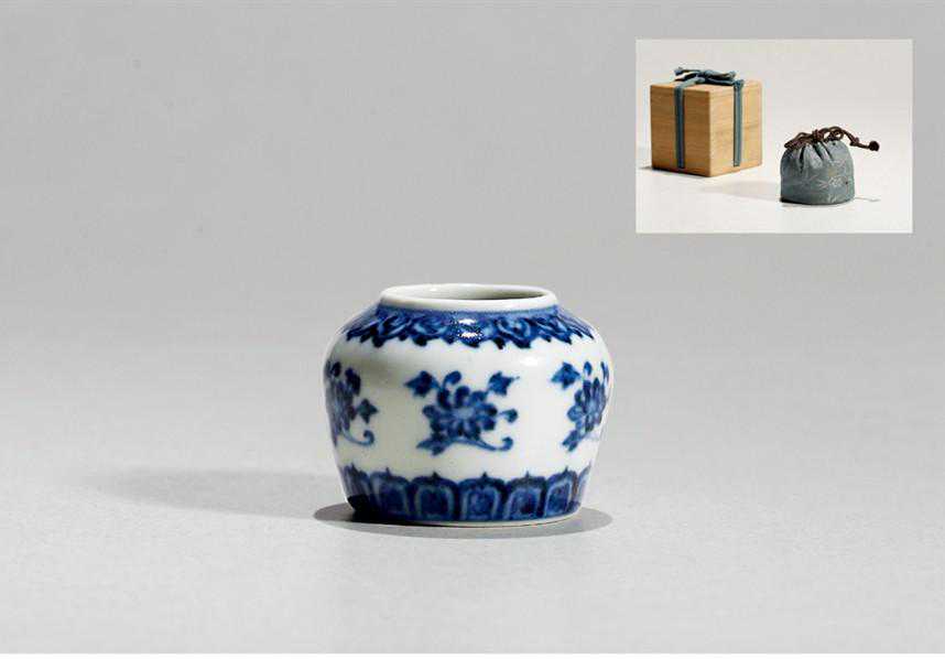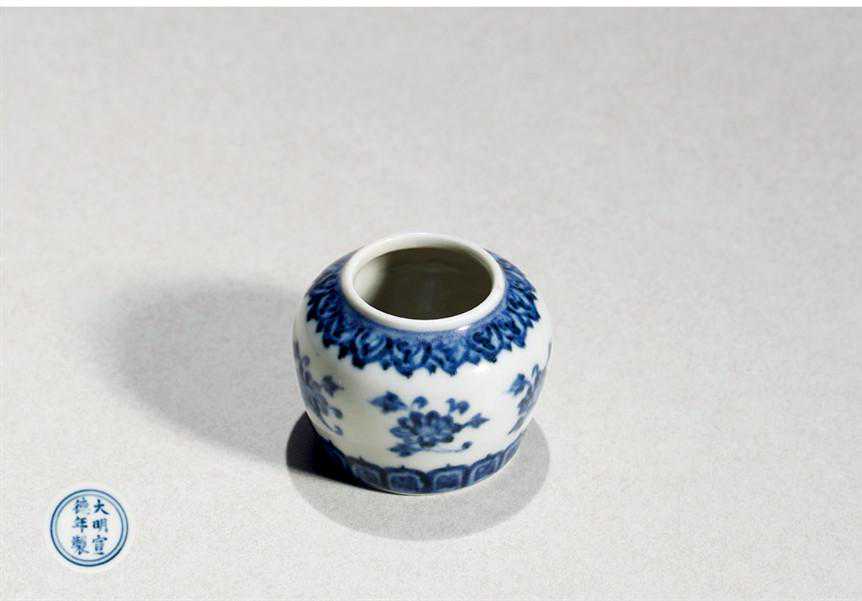 说明:宣德皇帝雅好艺术,亦好养鸟、斗蟋蟀,故景德镇珠山遗址出土不少宣德窑青花小型器,如鸟食器以及一些器用不明的小罐。