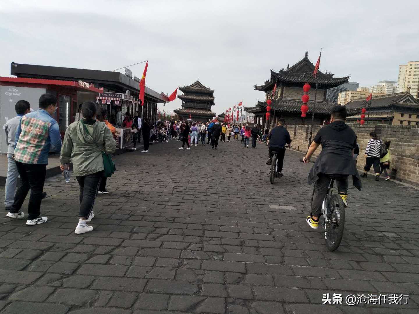 西安的城墙,要比永年广府的城墙宽,大约有十米多。长度和规模,也都要胜过广府城墙。修整的的也很平坦,比广府的城墙“新”多了。