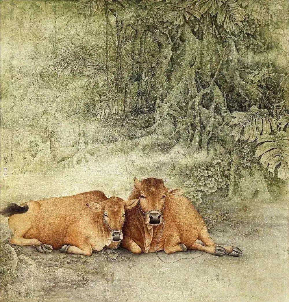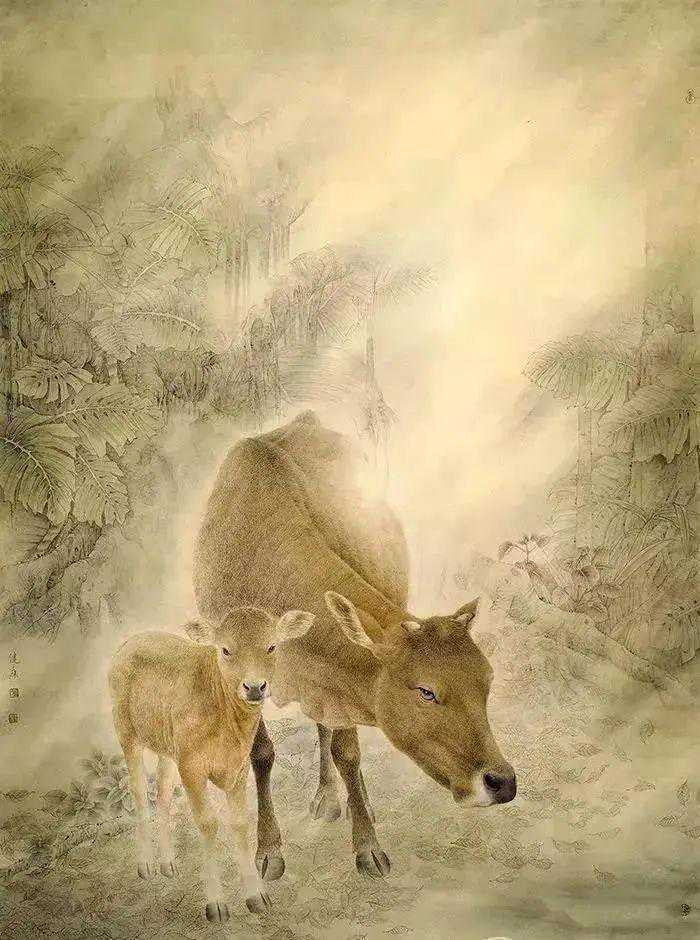 蓝健康笔下的鱼尤其注重悠闲自得、自由自在的情感表达。他的作品经常与诗意融合一起,以此达到一种美妙高深的艺术境界,拥有一种独一无二的魅力和内涵,观赏他的国画作品就像是在进行一场文化艺术的洗礼与熏陶,极有收藏价值。不忘初心民族艺术的探索者除了擅长画鱼之外,其原生态艺术绘画佳作-一牛,更是其创作的代表。画家蓝健康,一鱼一牛,画坛双绝。他以牛的题材国画获第八届全国民族百花奖金奖,创作水平受到肯定。