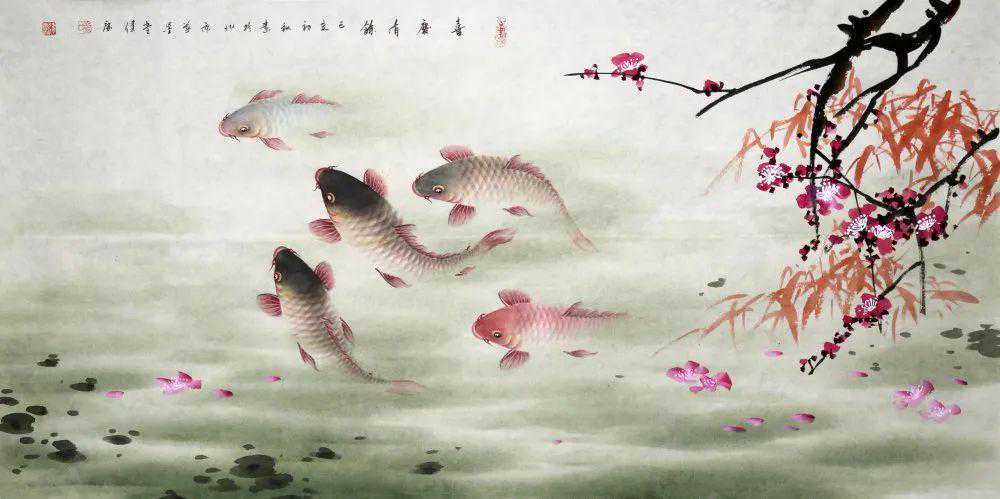蓝健康尤喜画鲤鱼,曾创作出一幅长达15米的巨幅作品《龙鱼颂》。这幅作品以56条鲤鱼为元素,用“龙鱼”赞民族,传递民族大团结精神的巨作,收藏价值高达百万以上。因此也倍受藏家瞩目!
