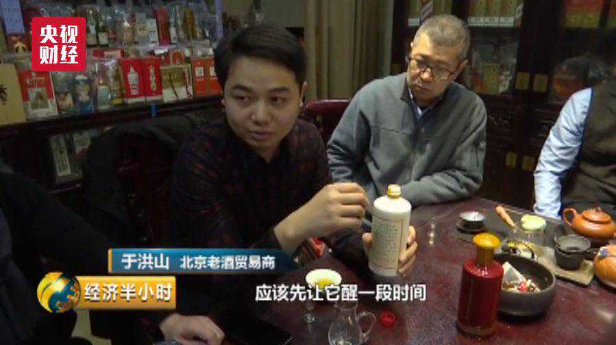 北京老酒收藏爱好者于洪山:酒先打开,老茅台让它醒一段时间,大概15到30分钟,然后再喝,口感会更好。