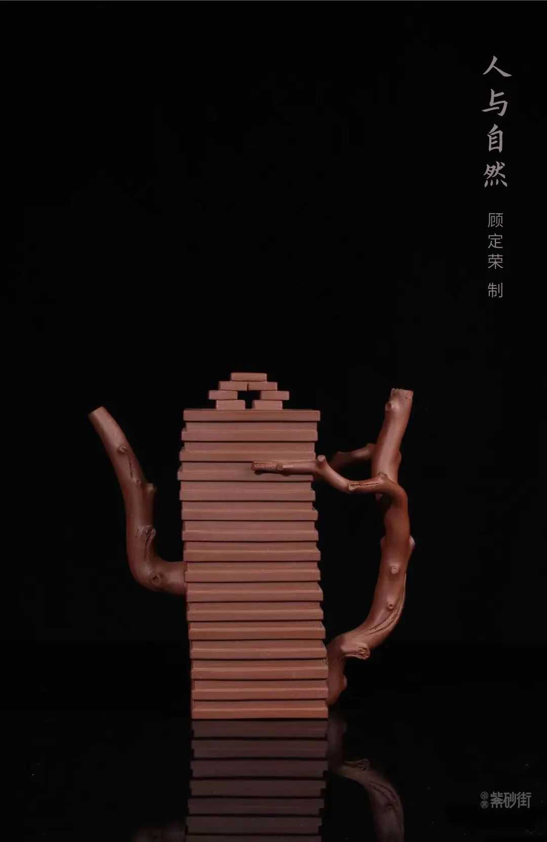 初识这位紫砂艺人是在知乎上看到了一把独特紫砂壶,《人与自然》。