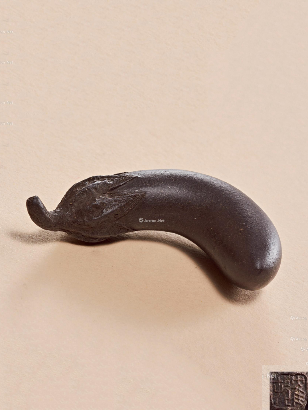 0010清鹤村款乌泥茄子摆件
