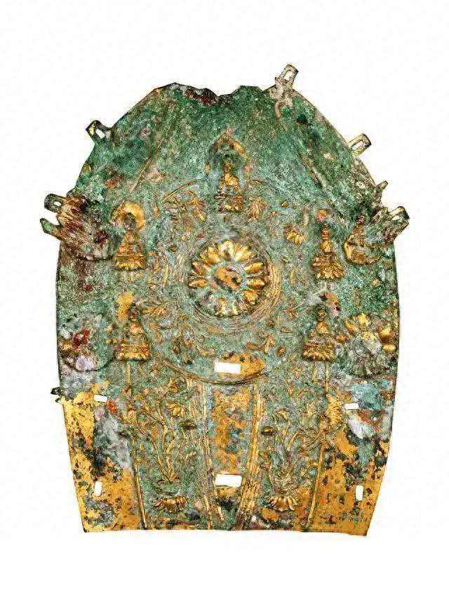 在乡亲们的建议下,岳荣安决定把这个金灿灿的家伙送到文物部门去鉴定一下。专家们接过铜疙瘩,先是称了称重量,足足有18斤!接着他们小心翼翼地清理掉表面的铜锈,发现这是一块雕工十分精美的鎏金铜板,铜板上还刻有一尊端庄高雅的坐佛像,两旁是绽放的莲花和翩翩起舞的飞天。