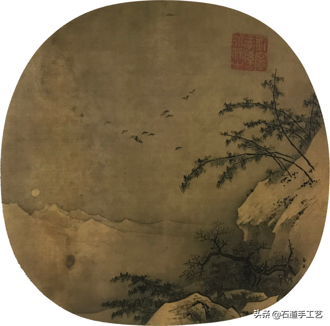 马远,南宋光宗、宁宗朝画院画家。这幅自然人间浑然一体,堂内侍宴,阶下执灯起舞,屋外丛梅、远山呈现于苍茫夜幕之中。中国水墨画写实在此得到深化,表现自然诗情画意。是南宋时代的代表。