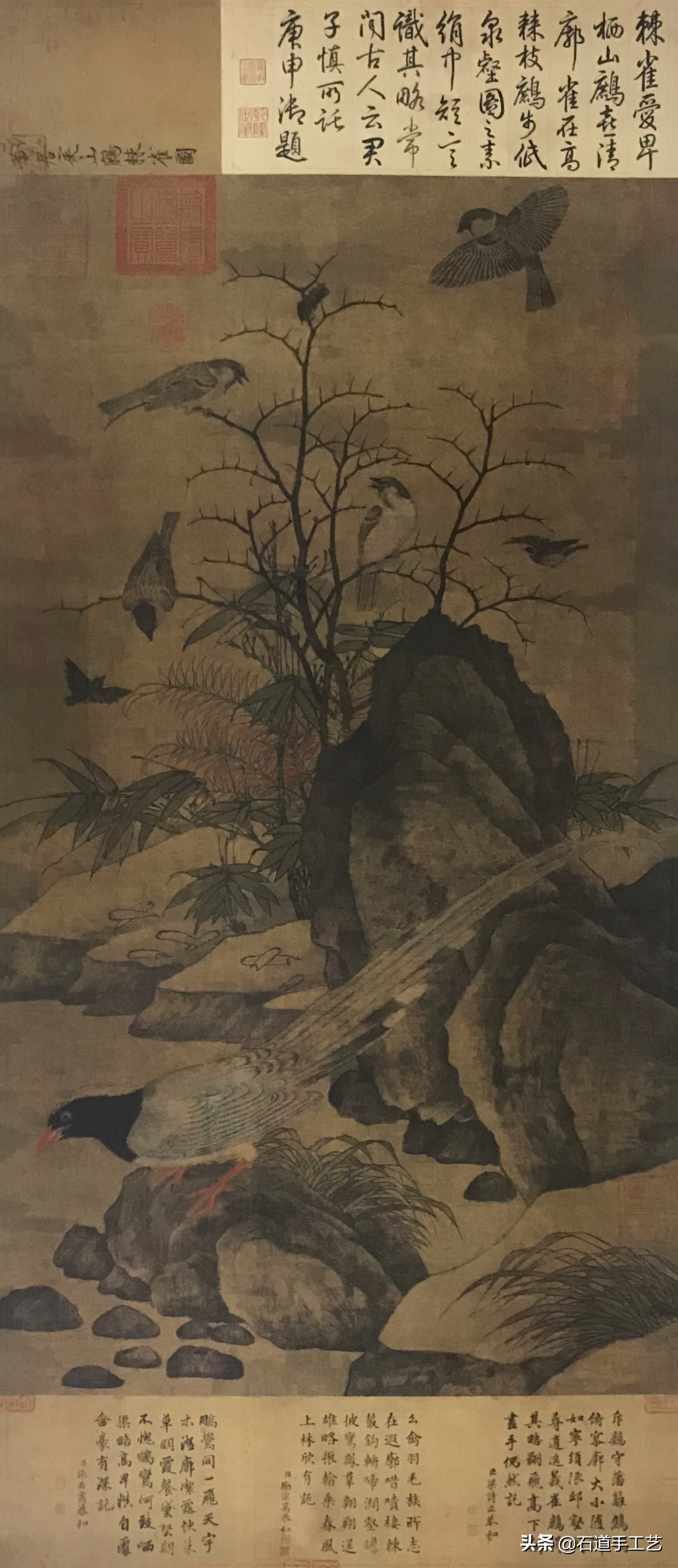 P22徽宗蜡梅山禽图挂轴∕绢本‧设色