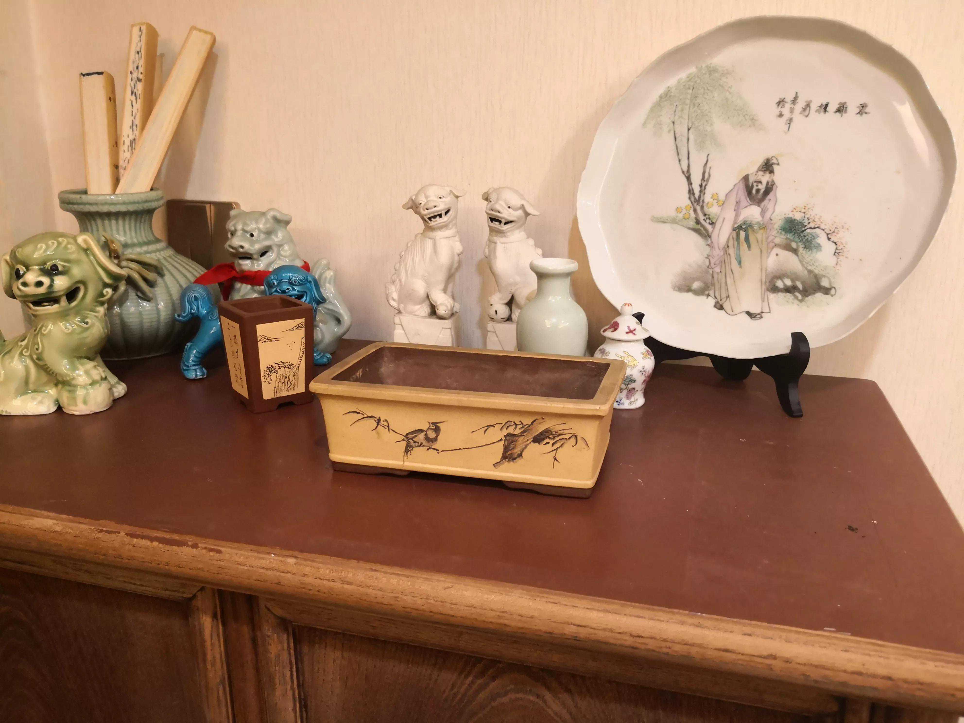 底款方章为“中国宜兴”,长方章为“玉芬”应该为制盆人,玉芬应该是紫砂厂的老技工,在七、八十年代制作了不少经典的花盆。