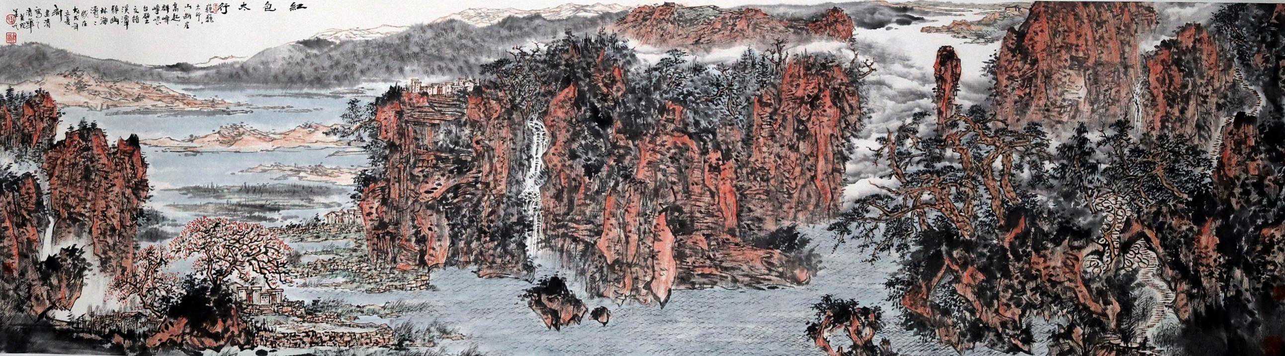 2017年9月《红色太行》国家任务,迎接党的十九大胜利召开,中国美术家协会邀请创作,挂于京西宾馆主会场并永久收藏。