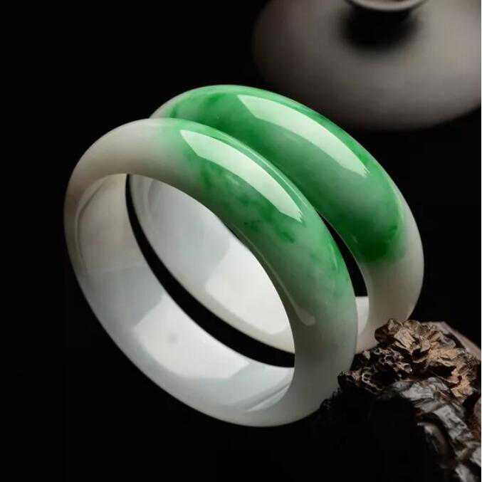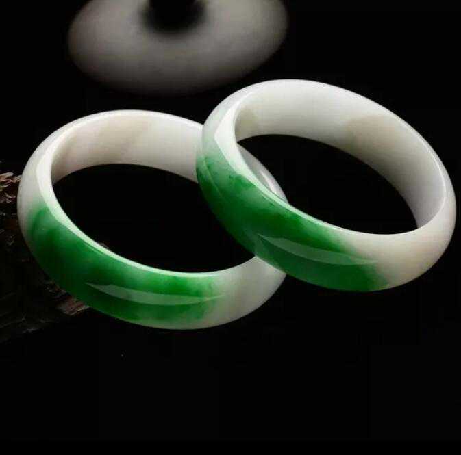 如果这个手镯绿色比较浓,在手镯上占的面积比较大,甚至占到1/2这么大的面积,然后种水又稍微好一点,这样的白底青的手镯,至少批发价可能就要到几十万。