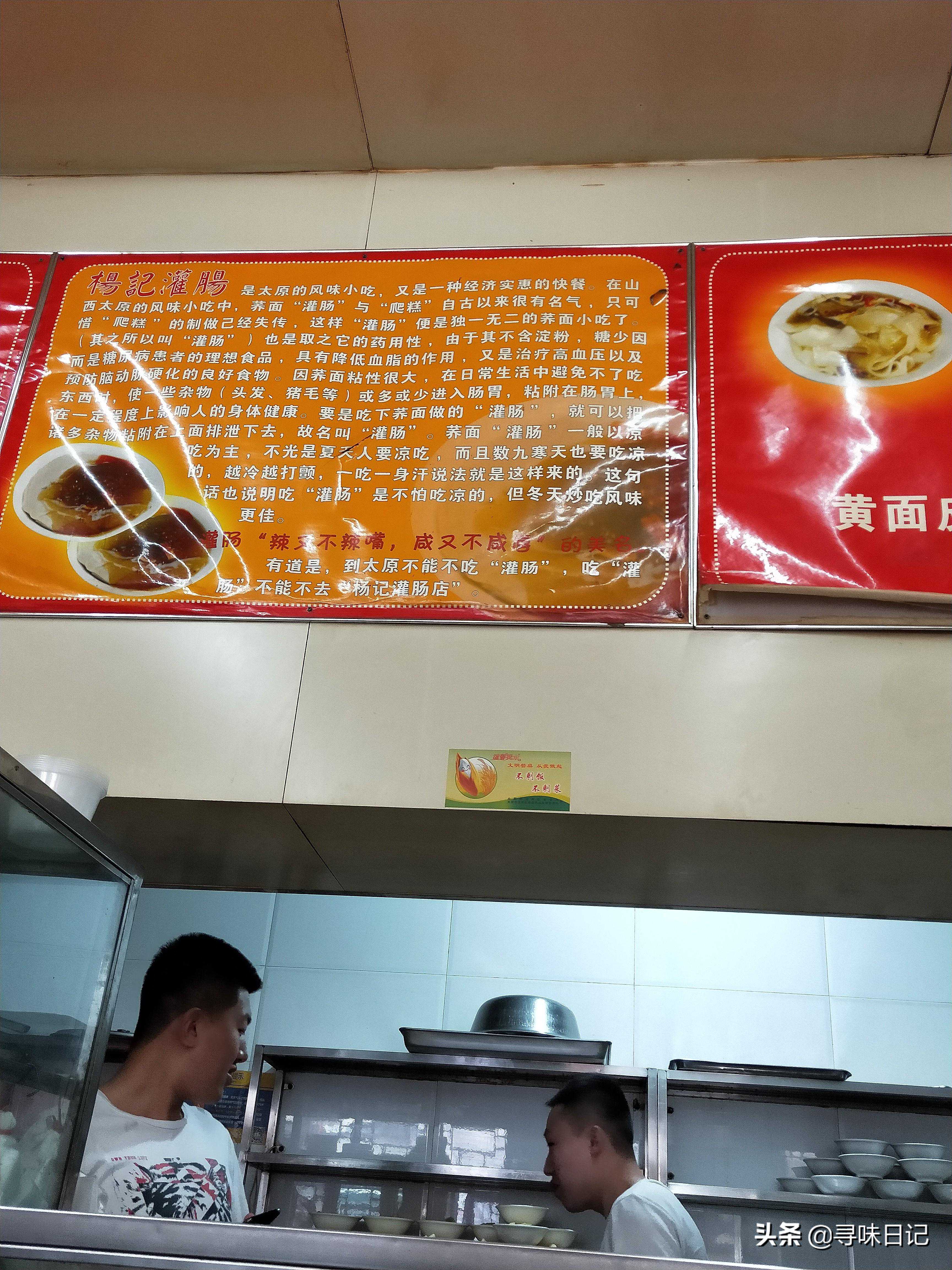 里面有不少的食客。出于好奇就进去了,看着这名字我以为是香肠一样的肉制品,然后一看简介,写着是一种荞面小吃,而为什么叫灌肠呢,是因为荞面的粘性大,吃了就可以将日常饮食中不小心吃入到肠胃的杂物(头发、猪毛等)粘附在上面排泄出去。