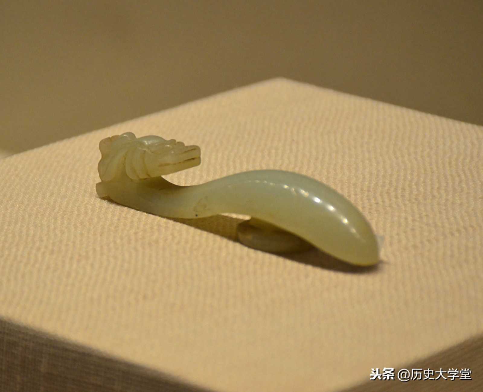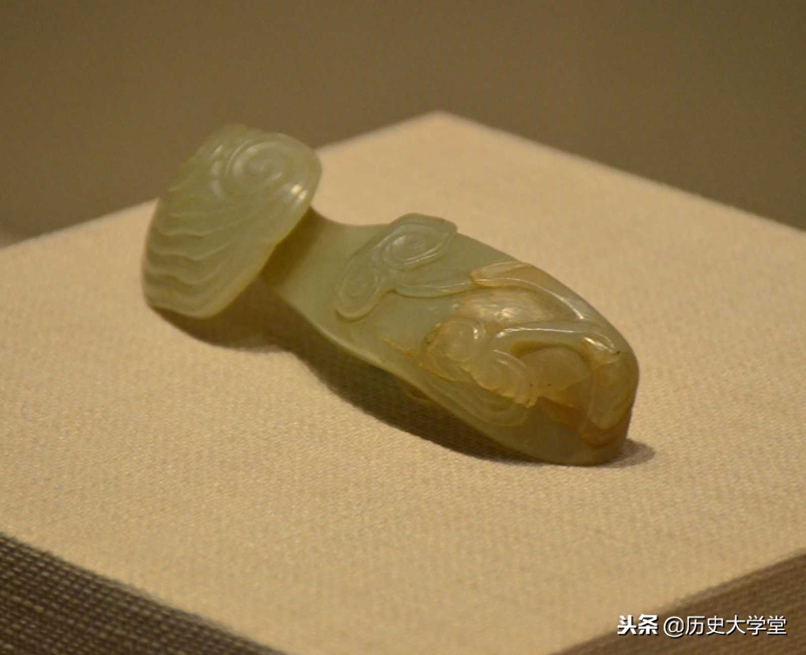 这是明朝的“灵芝形玉带钩”.长12厘米、宽3.5厘米。
