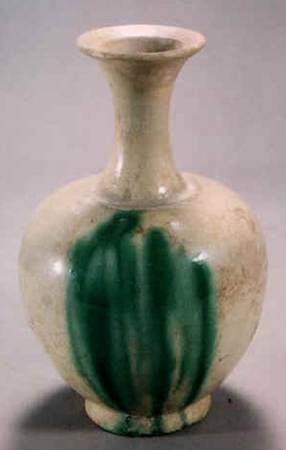白釉绿彩长颈瓶