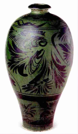此外,磁州窑将白底黑花作品再罩一层透明绿釉,称之为“绿磁州”,工艺繁复,成本高昂,显然是为高端市场设计,美学效果却并不突出,于元代草草收场。