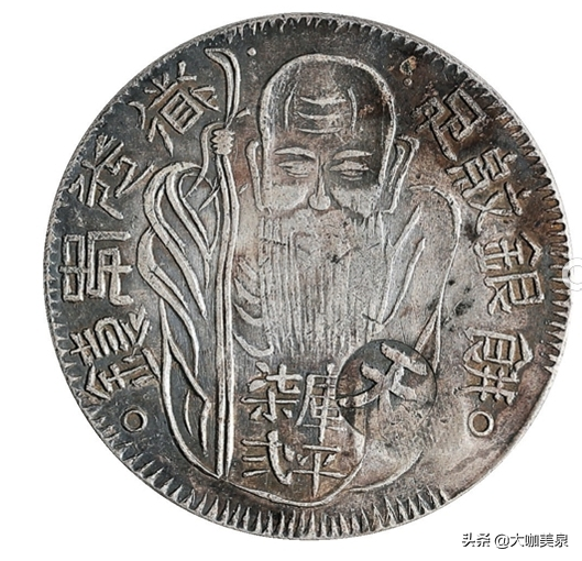 台湾府铸库平七二寿星银饼(老公银)【直径41mm;重量26.8g】铸于清道光十八年(1838年)足纹银饼,含银九成八,重库平七钱二分,由银匠手工打造,数量非常有限,是中国最早官局所铸银币之一。|数量:1