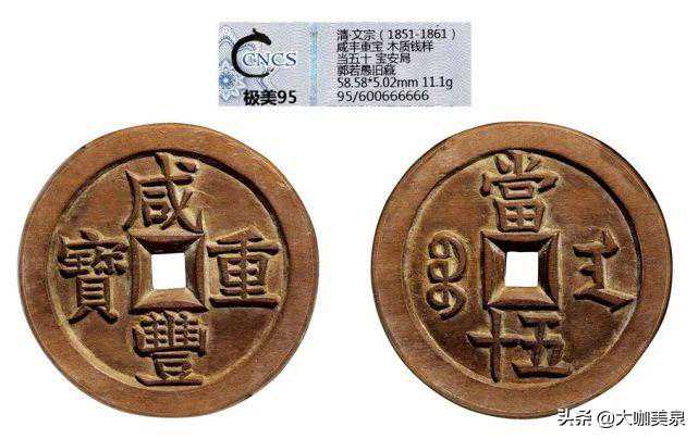 清·咸丰重宝宝安局当五十木质钱样【直径:58mm】