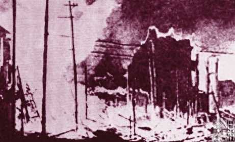 “五三”“五四”大轰炸,重庆繁华的商业街被炸殆尽。图为被炸后的街景。