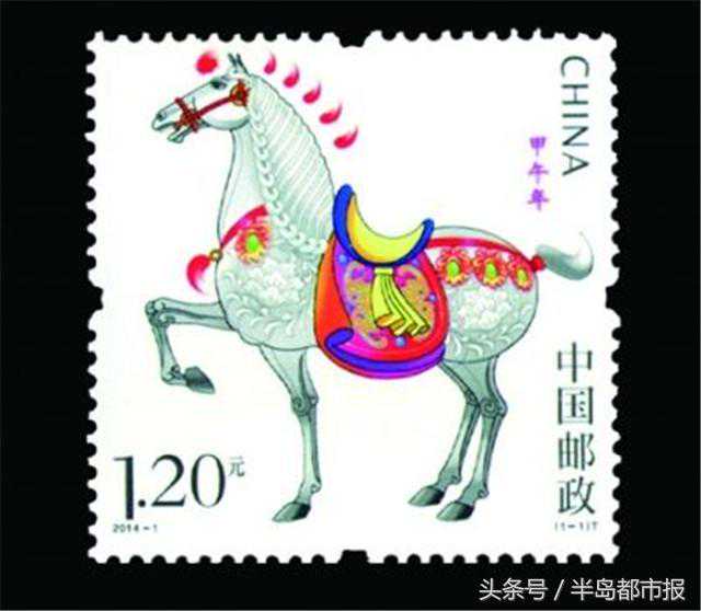 2014年《甲午年》(马年)特种邮票1套1枚,同时发行小本票1本。据了解,该套《甲午年》生肖马的设计造型汲取了我国古代马雕塑的精髓,并参考唐三彩马的特征,运用富含吉祥寓意的传统装饰图案,表现出马的俊朗、强健与吉祥。白马面颊俊秀、筋骨雄强、体态优雅、气宇轩昂,装饰在马身上的牡丹、蝙蝠,表达了“马上有福”、“吉祥富贵”的美好祝愿。该邮票是清华美术学院视觉传达系王红卫副教授和他的研究生郝望舒共同设计。