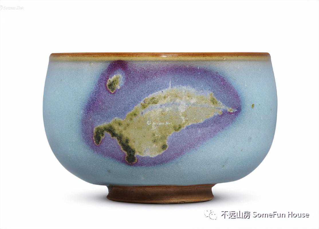 大都会艺术博物馆藏金代钧窑天青釉玫瑰红窑变碗