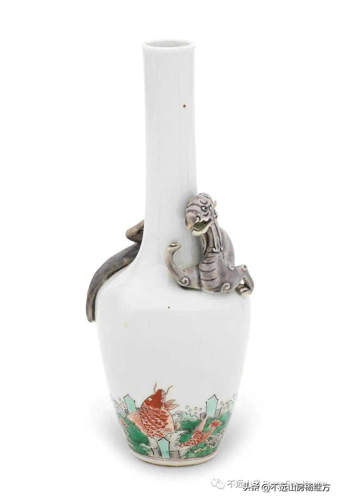 RogerKeverne旧藏清康熙五彩鲤鱼纹盘螭长颈瓶(3.8万)