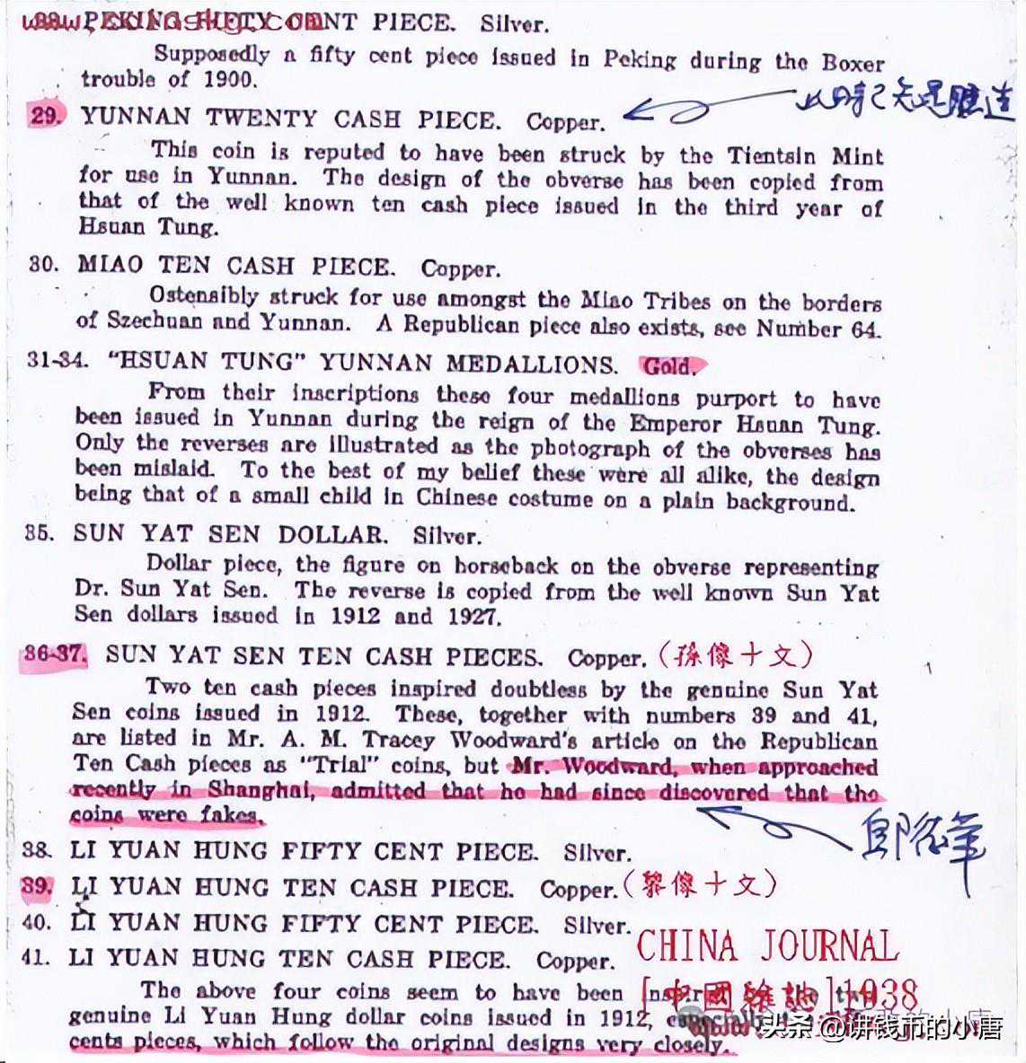 民囯时代臆造币的认定见诸文字的,则是另有本“葵花宝典”(姑且称之“老假宝典”),是一位上海洋行的洋人雷本(RAEBURN,Duncan)于民国26年发表的一篇《CoinsThatNeverWere》(不存在的銭币)。作者曾经与邬德华讨论过,邬德华“承认”(admit)孙像黎像这三种四版(雷本编号36,37,39,41),他后来发现是假造(fake)。